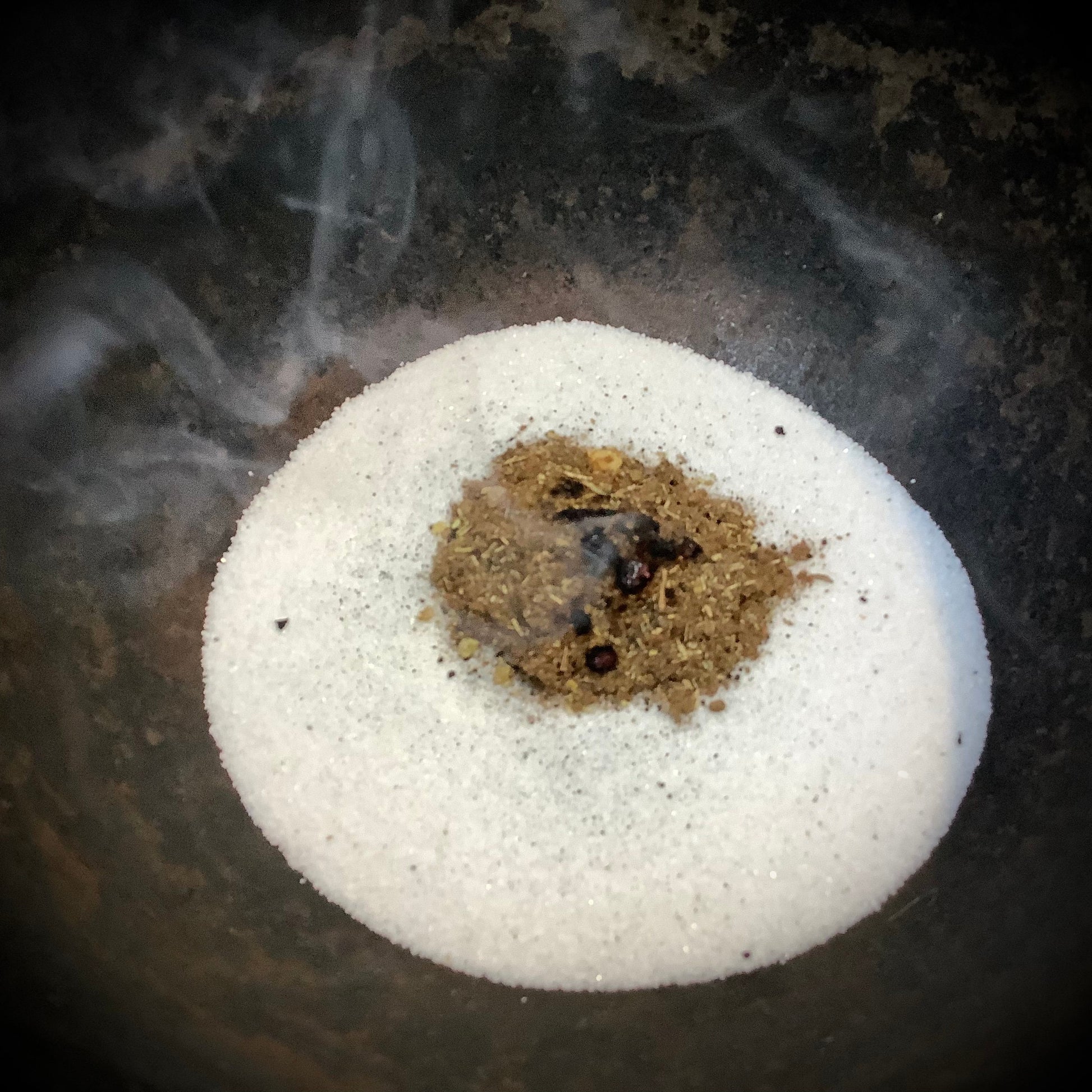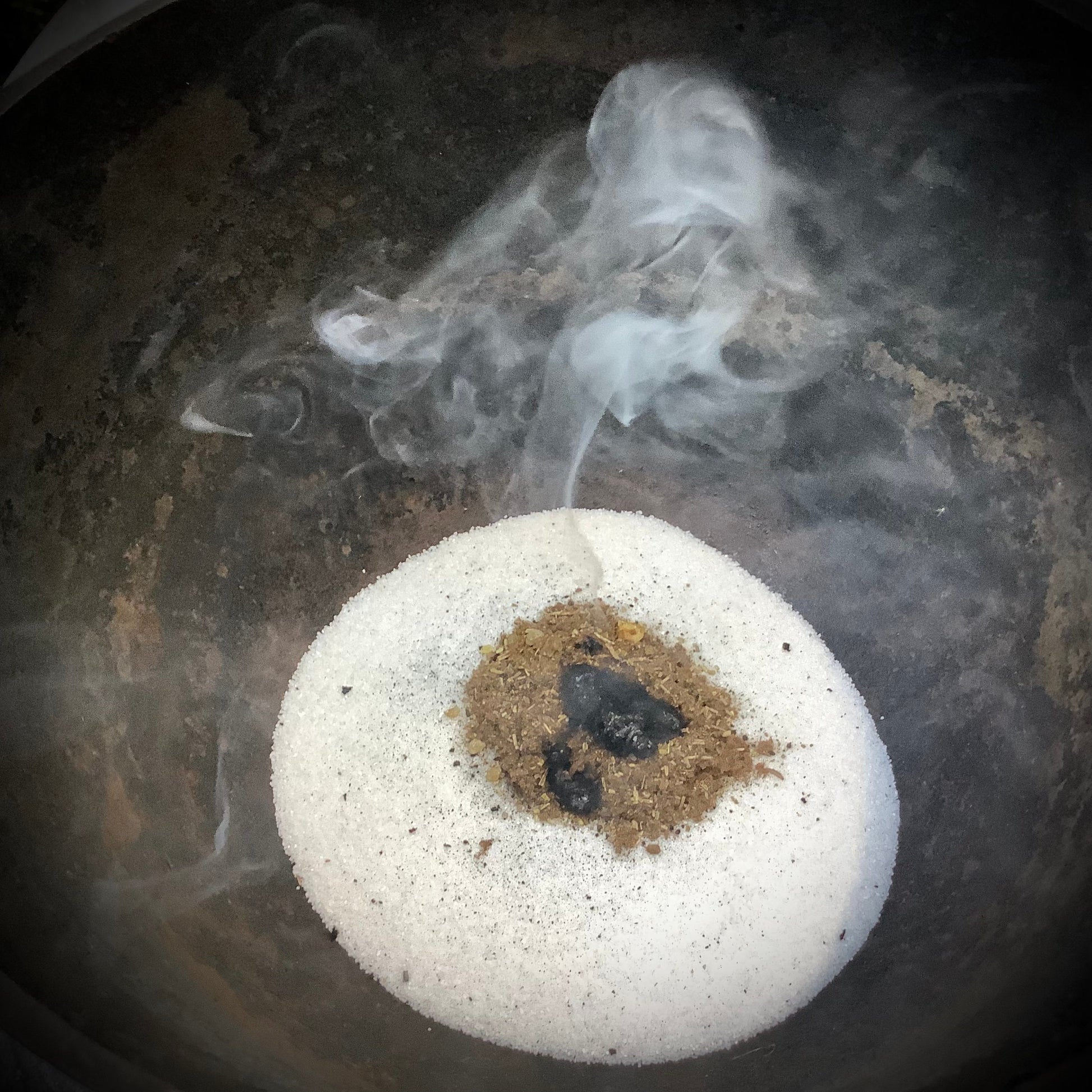 The scent is very Earthy and slightly sweet. It will remind you of Sage burning. A little goes a long way! Made with Mugwort, Sandalwood, Hyssop, Cinnamon, Rosemary and more!