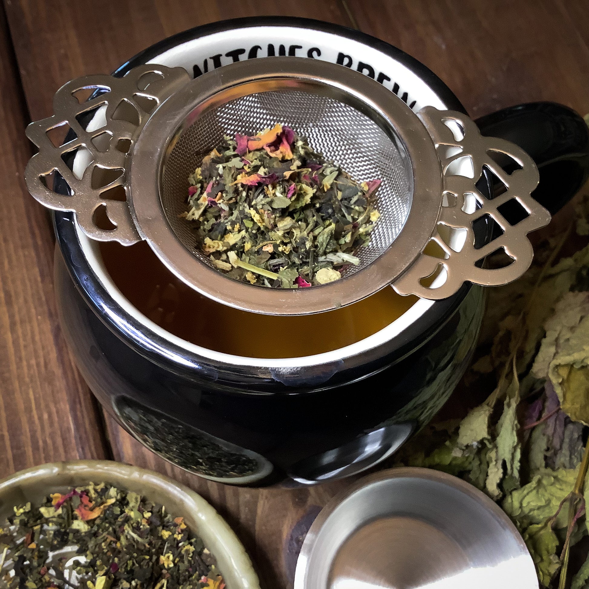 This tea strainer is for steeping a full cup and for the "pour over" style of brewing. While your herbs are steeping in the full cup of hot water, they are also visible and visually appealing. I like the aesthetic of these very much!