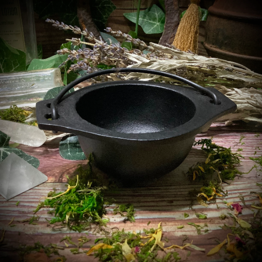 The Cauldron is a traditional cooking pot for both food and medicines. The Cauldron is also used for burning herbs, incense, resins, incense powders, casting powders and more. Cauldrons are also great for hanging over the fire and simmering your favorite brews.