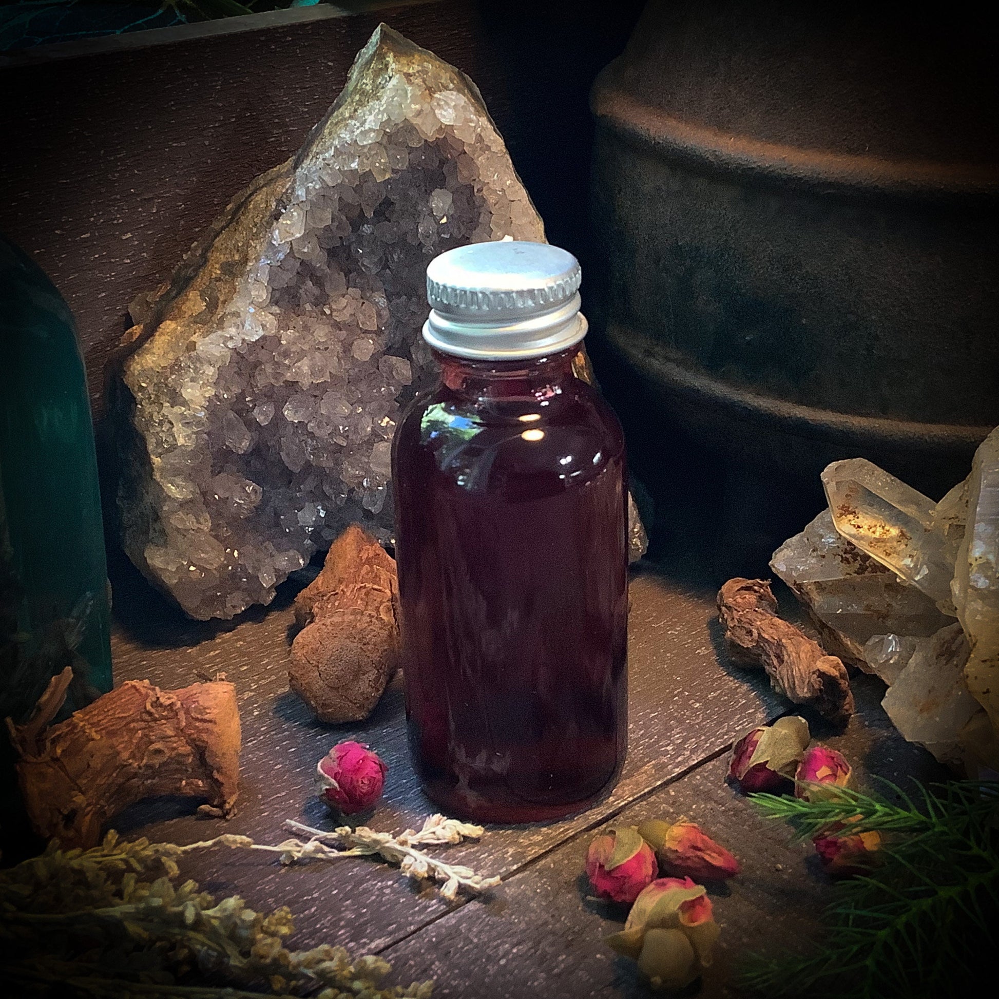 The Earth's Cauldron Anointing Oils are created with all natural base oils, pure essential oils, herbs, roots, resins, flowers and gemstones. Never any fragrance oils or synthetic ingredients. All my signature oils are 100% natural.