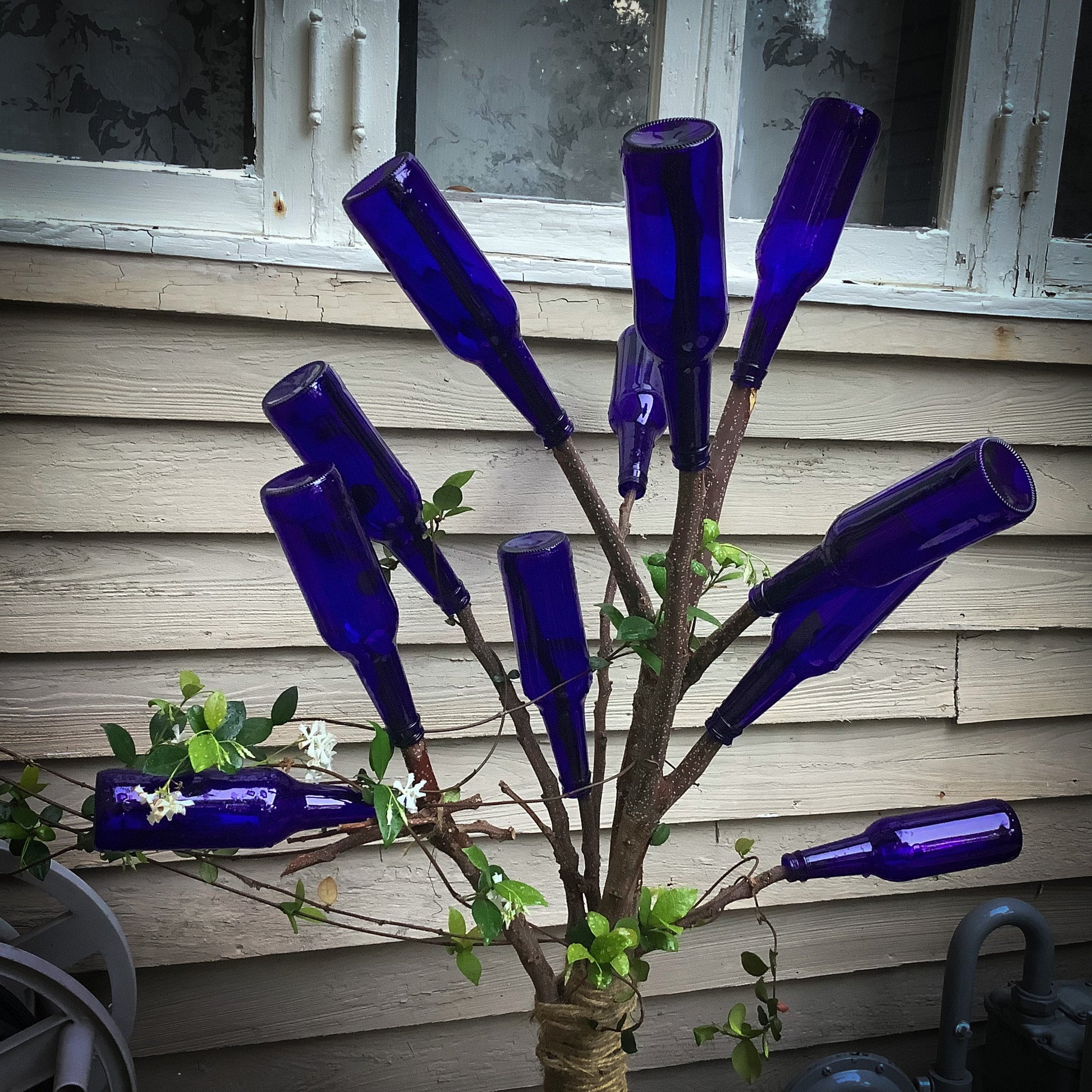 Same concept as the bottle tree. Another Southern tradition. I have 3 myself, one of which I included in the photos here. Hanging bottles from trees or the making a bottle tree traps them and they are diminished when the morning sun hits the bottle.