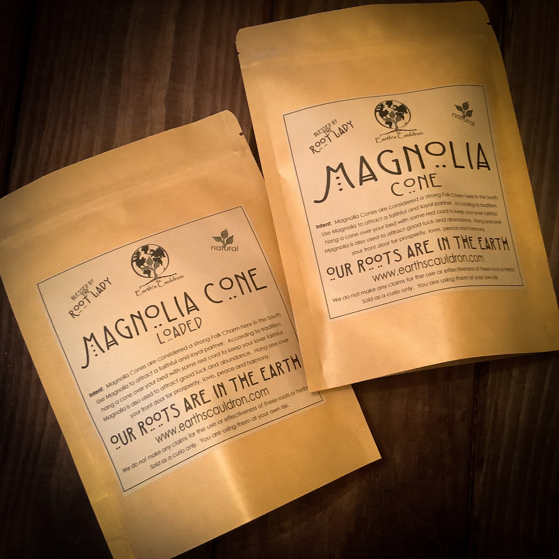 Intent: Magnolia Cones are considered a strong Folk Charm here in the South. Use Magnolia to attract a faithful and loyal partner. According to tradition, hang a cone over your bed with some red cord to keep your lover faithful.