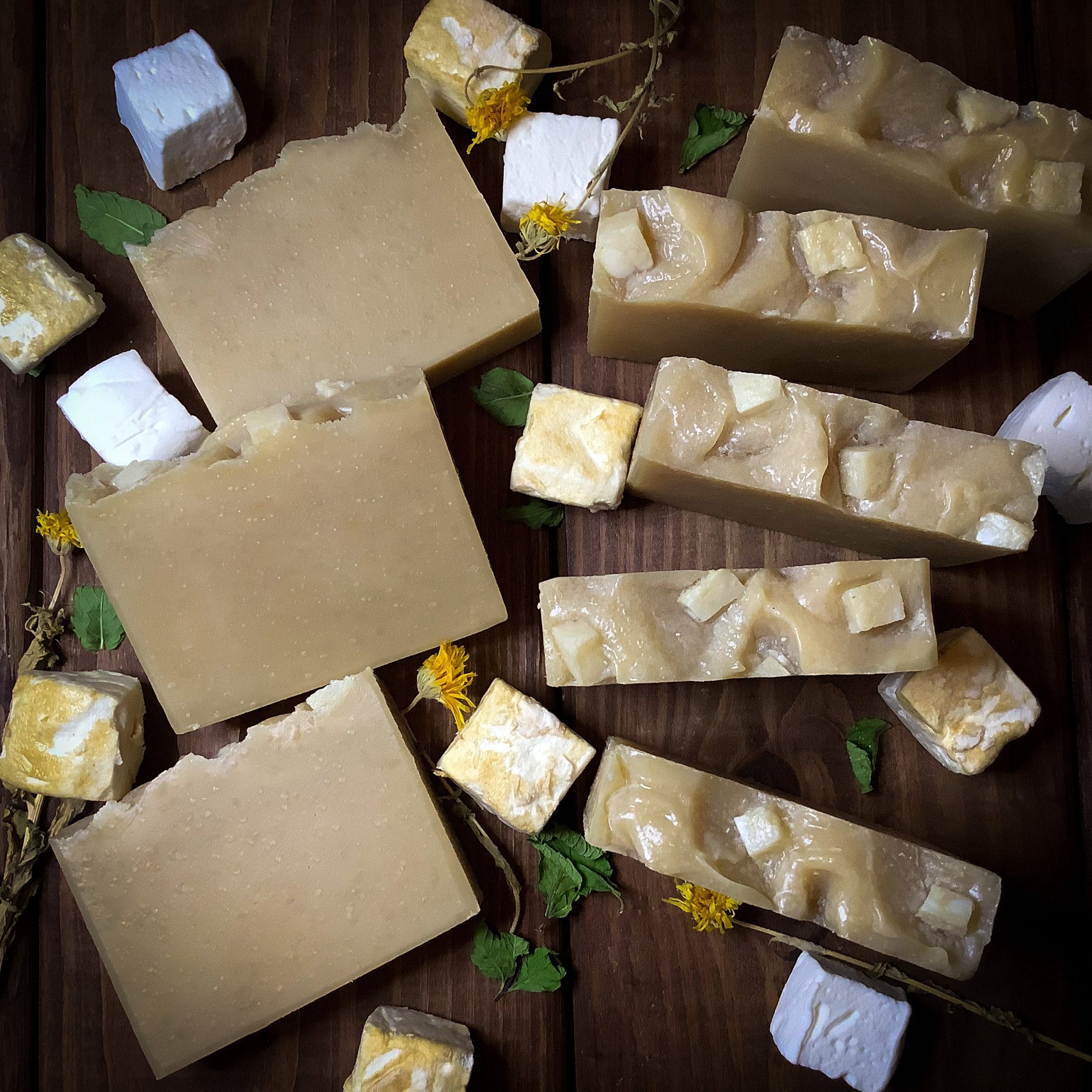 We only use pure, 100% natural ingredients, such as oils, butters, herbs and essential oils in our products. No fragrance oils or mica. Palm Oil free. All ingredients are obtained from sustainable sources and organic whenever possible.