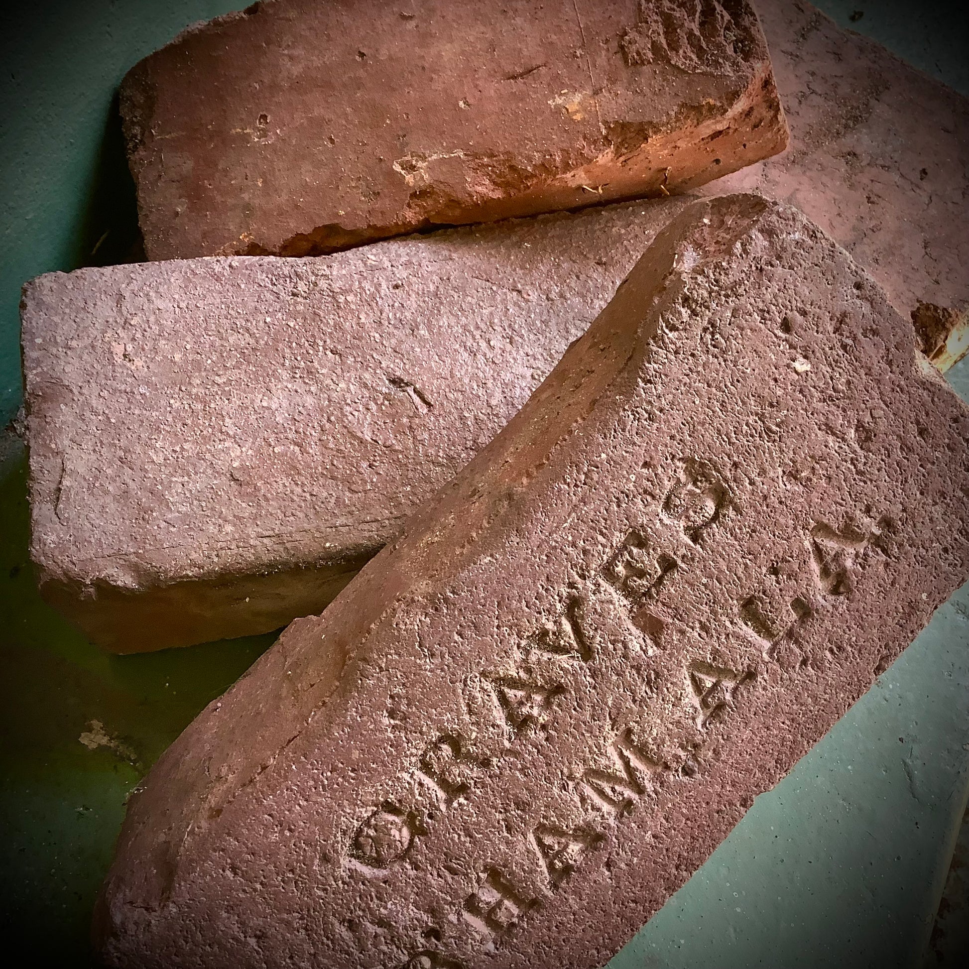 Ground by hand from antique red bricks from my hometown here at The Earth's Cauldron! Bricks are over 100 years old.