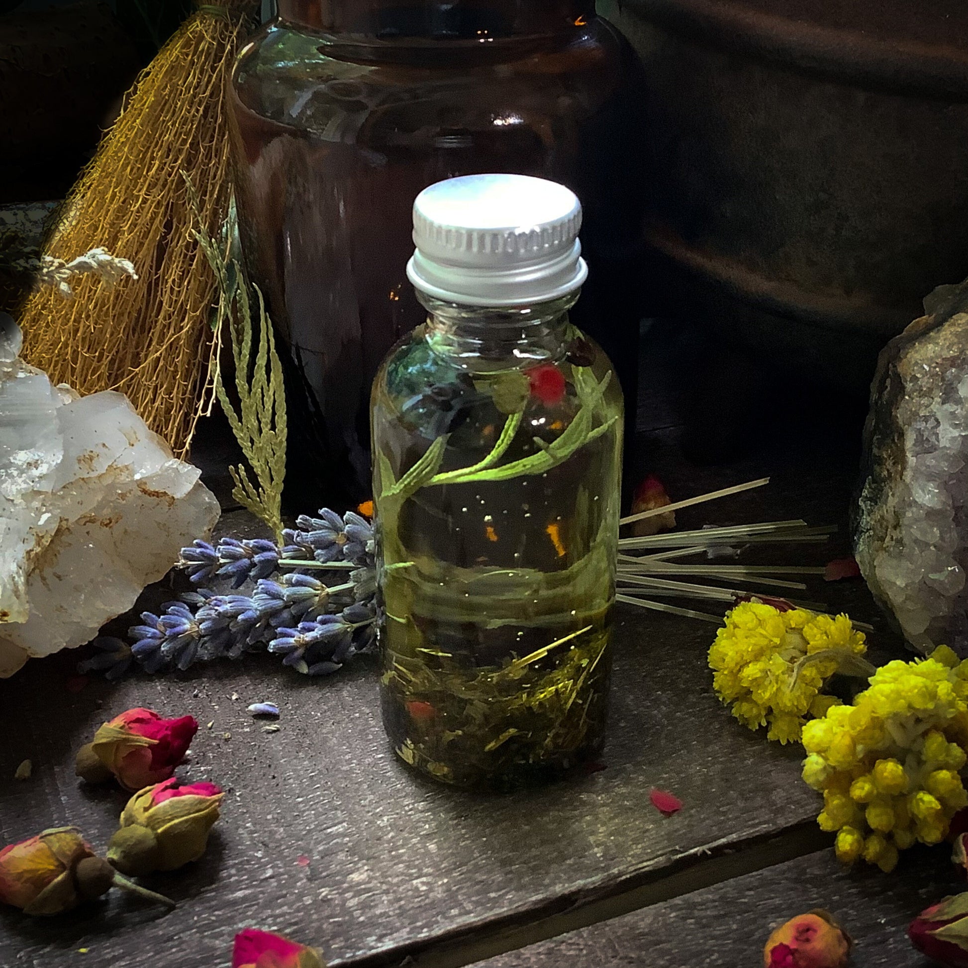 Each Anointing Oil is handmade here at our shop, during the appropriate moon phase, with full intent of the desired oil. Each Anointing Oil is unique and a signature blend exclusive to The Earth's Cauldron.