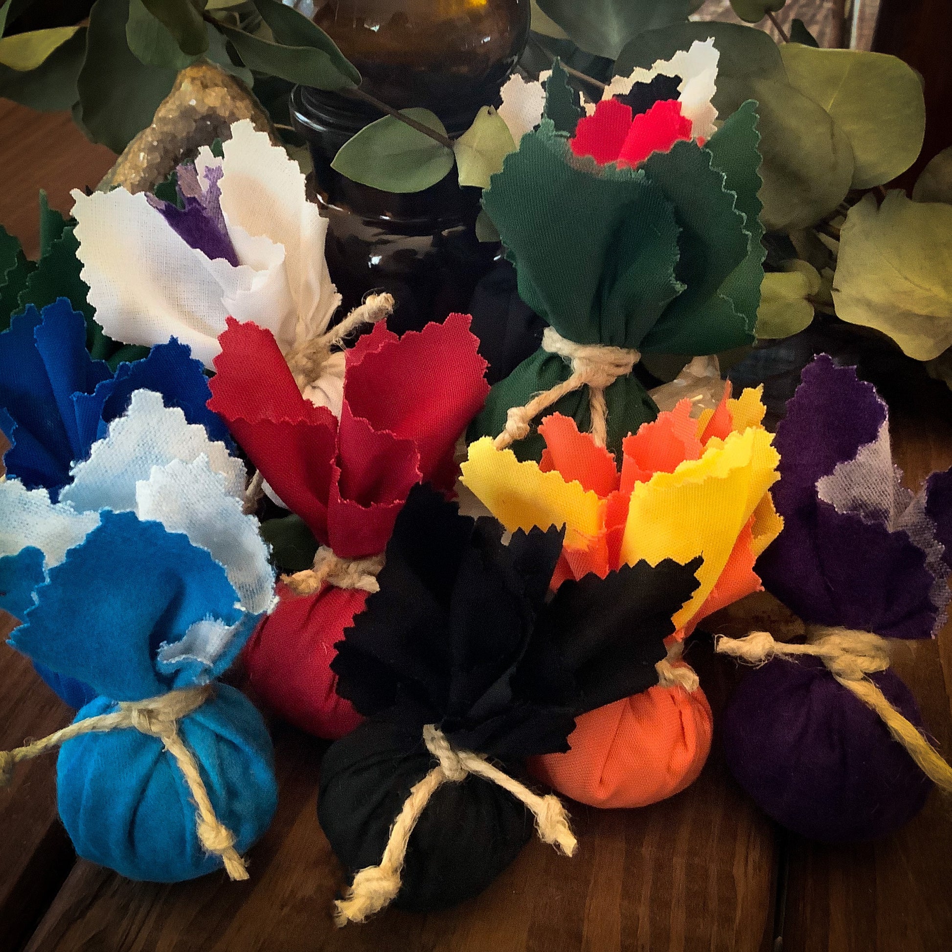 Here at The Earth's Cauldron each Mojo Bag is carefully crafted during the appropriate moon phase, with the appropriate cloth, mainly red, green, white, black, blue, and sometimes other colors may be used. Here in the South, I was taught to use the color I felt was appropriate for the "workin".