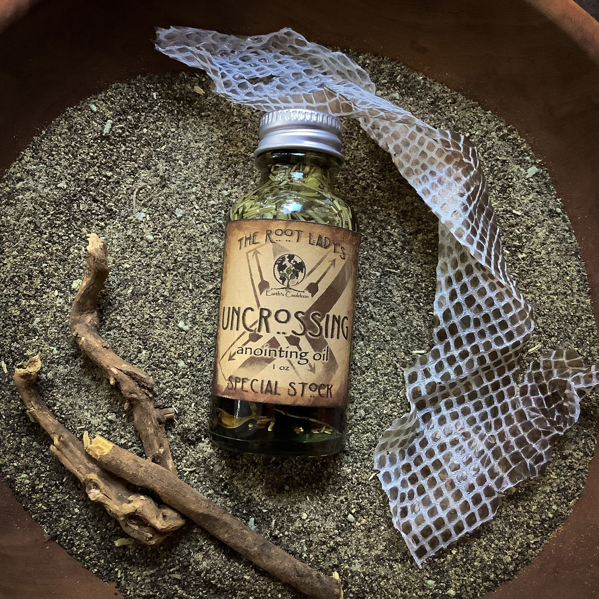 Uncrossing Anointing Oils are used when you want to uncross or remove negative situations, the laying of a bad trick or a rootin' you have unknowingly and unwantingly received. Uncrossing and Reversible are similar, but the difference being that uncrossing removes the negativity and reversible sends it back to the someone or something who sent it. Created from Rue, Rosemary, Devil's Shoestring and other natural ingredients.